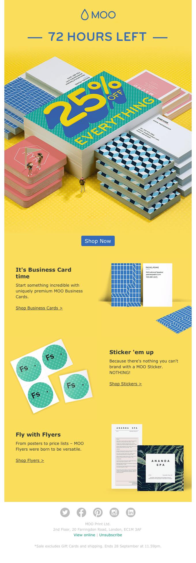 Many eCommerce businesses elongate their limited-time offer for their email marketing to cover several days or an entire weekend.