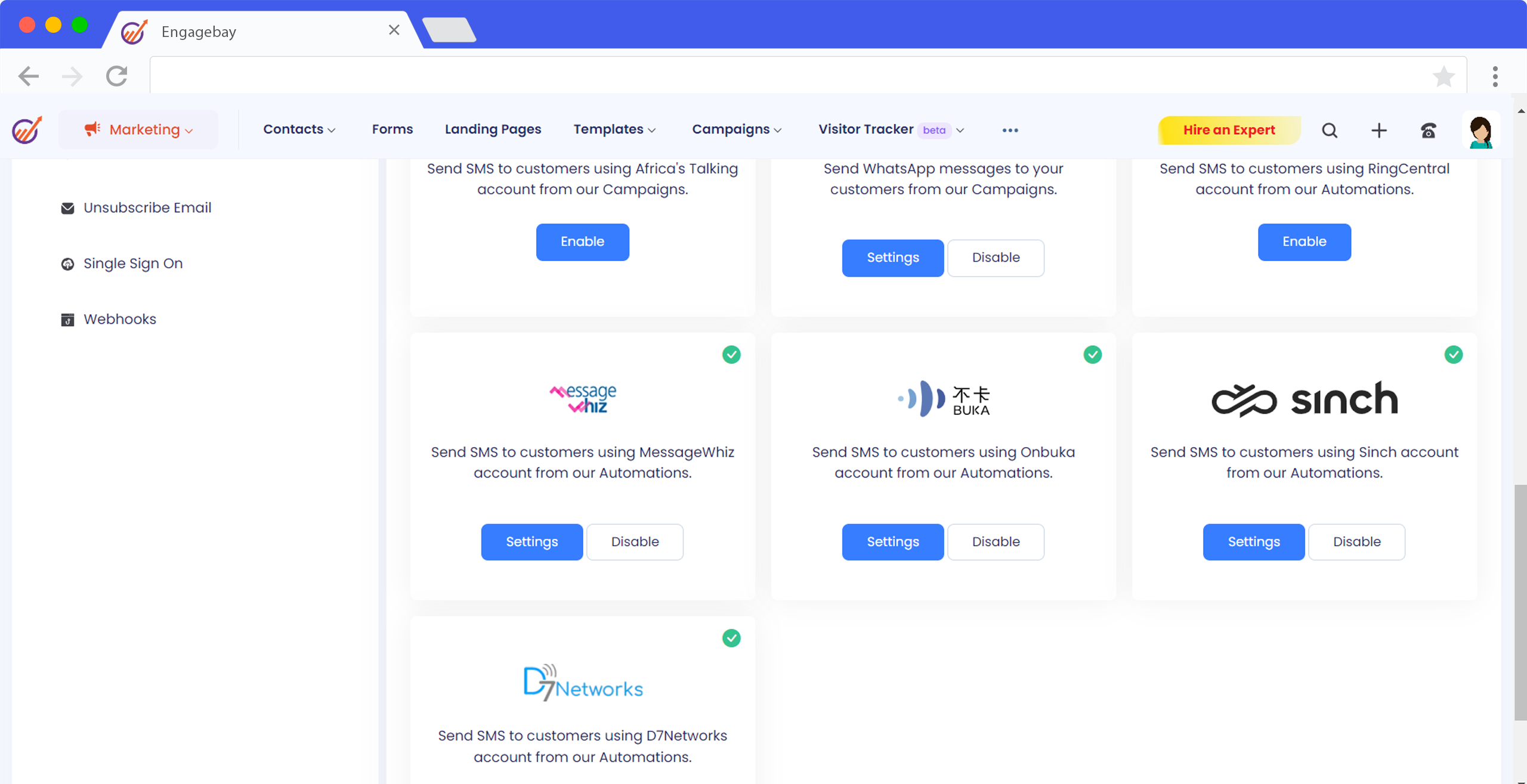 Unlock advanced SMS marketing within EngageBay CRM through the integration with MessageWhiz, featuring a pay-by-conversion model. This integration allows you to enhance communication with clients using timely, relevant SMS messages, boosting your business conversion rates significantly.