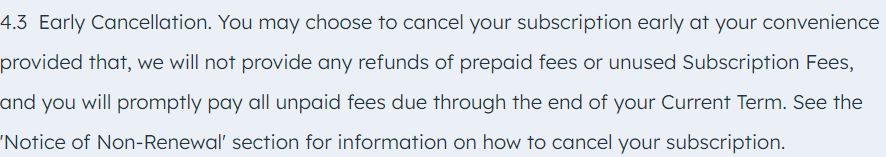 - Annual contracts lock you in, with no early cancellation or refunds. Even if you’re unhappy with the product mid-cycle, you’re still billed for the full term.