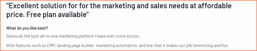 Parisa H. (Senior Campaign Manager) says HubSpot is a true “one-stop shop,” praising its integrated funnels, email, and customer history—and notes support/account management is easy to reach when needed. (G2)
