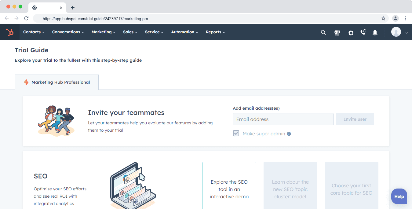 You can also ask questions in the community center and get in-depth answers from certified HubSpot partners. When you need instant answers for common tasks, you can use the extensive knowledge base to find answers.