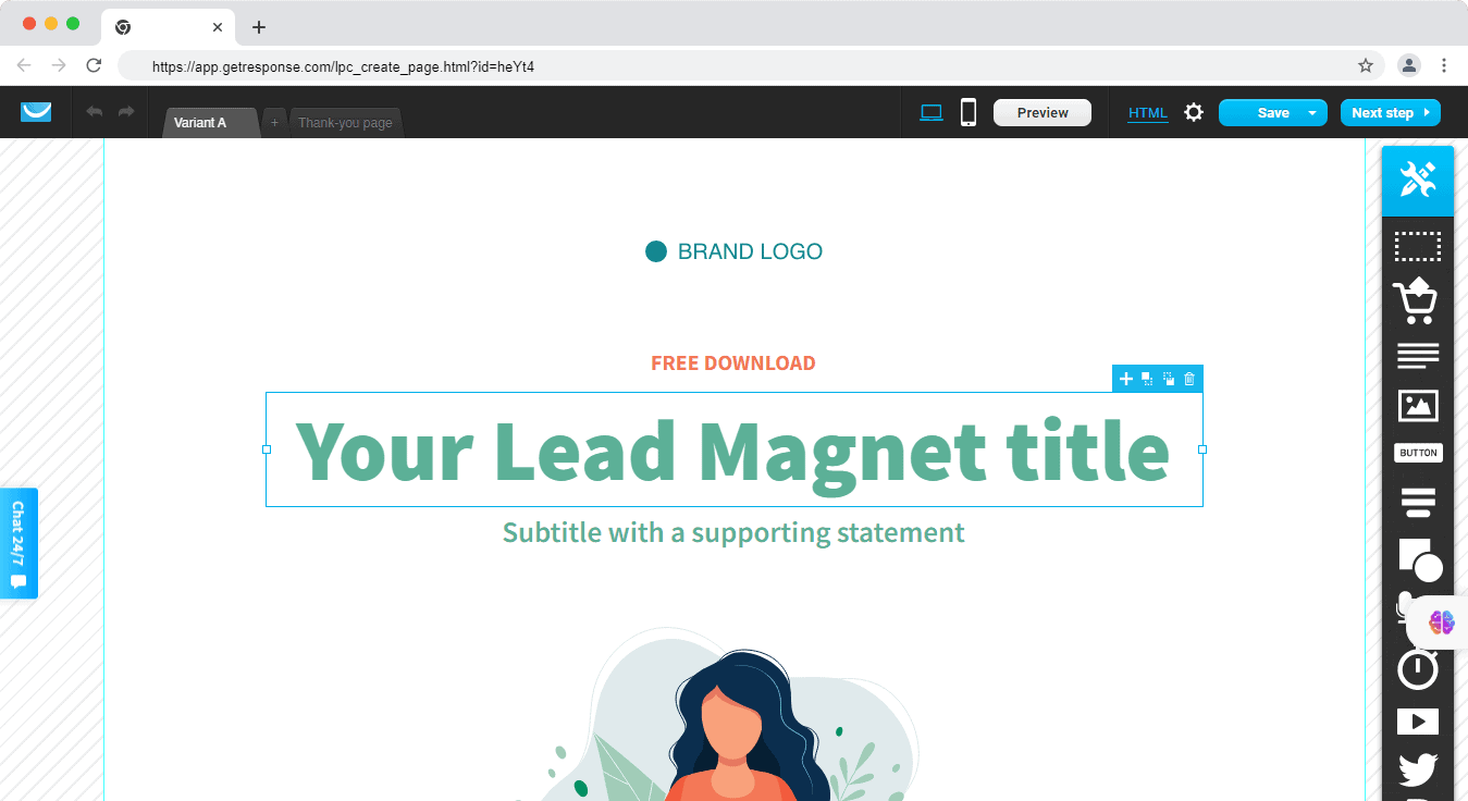 The landing page builder is really easy to use. You don’t need any coding experience to create a page, as it’s all done through a drag-and-drop interface. There are also a couple of pre-designed templates to choose from, which you can customize to fit your brand and messaging.