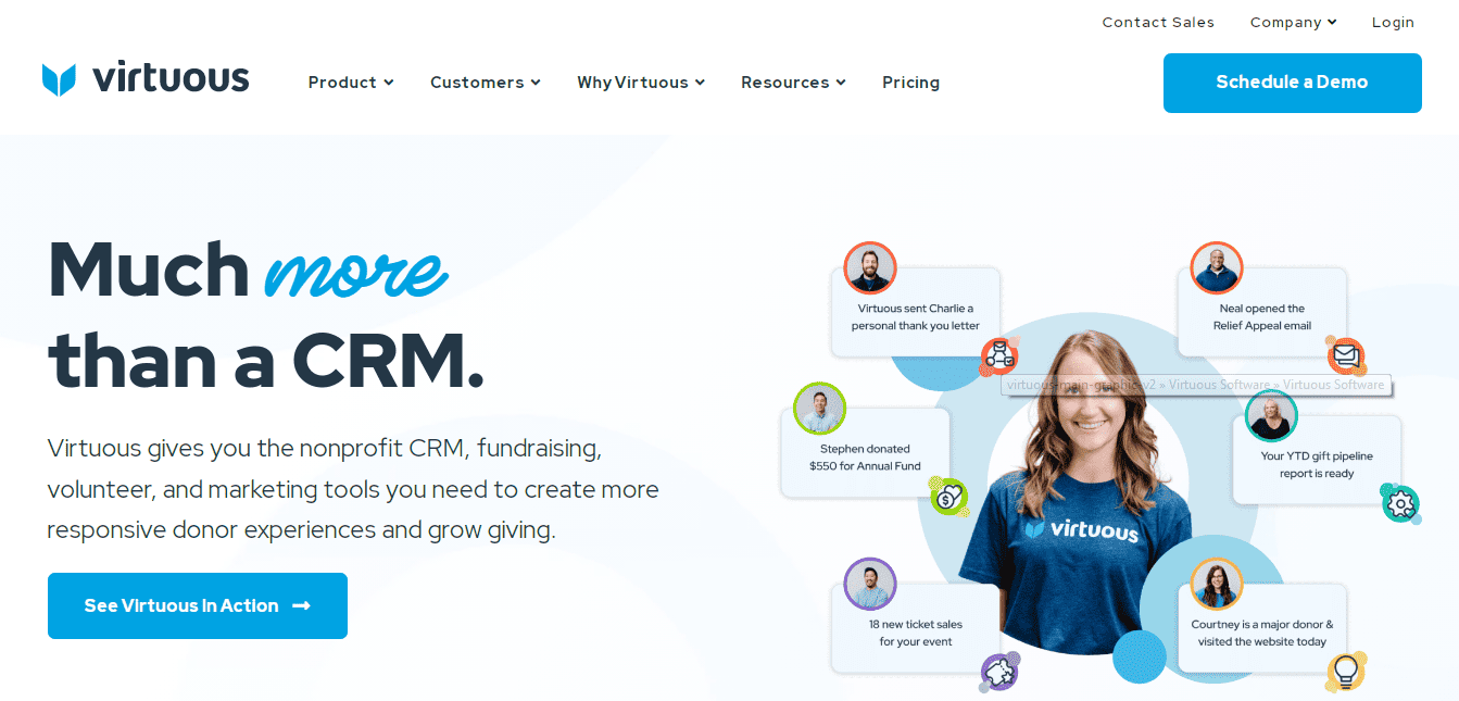 Virtuous is a CRM and marketing automation tool designed exclusively for nonprofits.