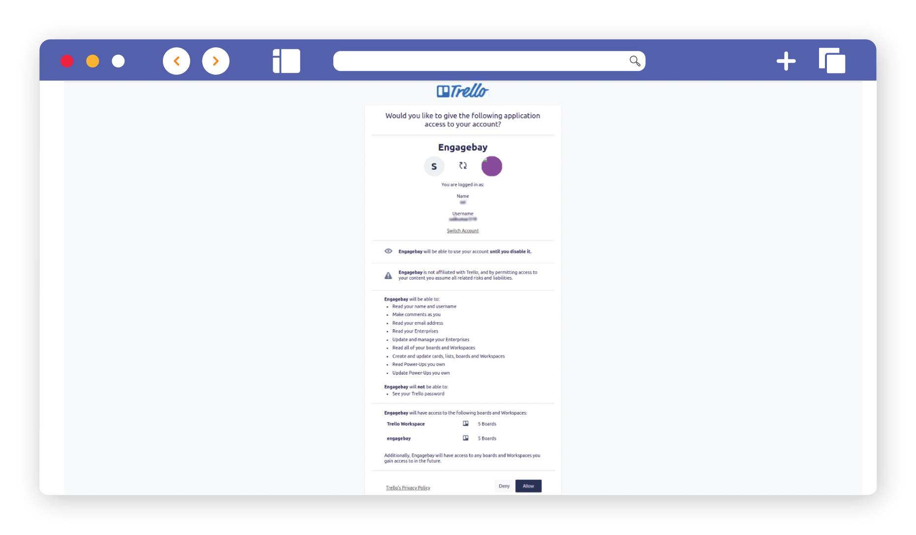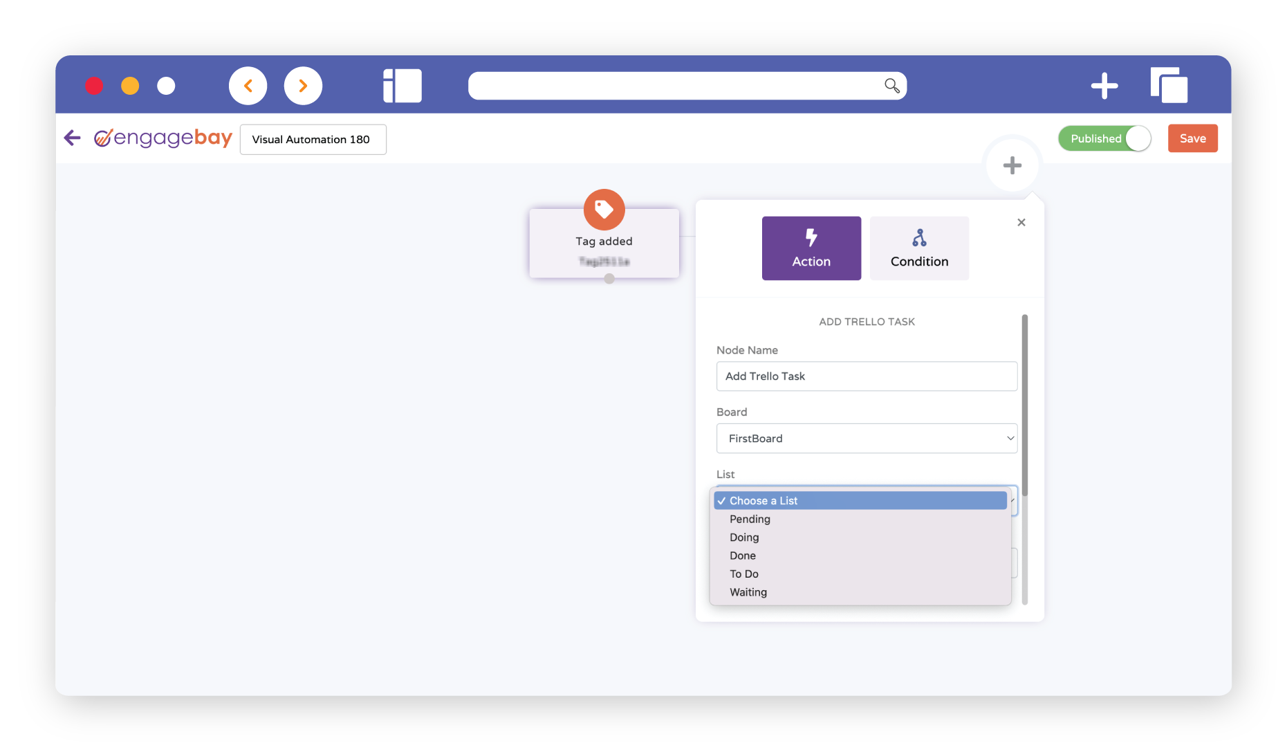 Trello organizes your to-do list to keep projects on task. Trello saves you time by helping prioritize what matters most to your team. With the EngageBay - Trello integration, users can create Cards, view Boards, Lists, add Description, and Due Dates, all in a rich and visually appealing format.