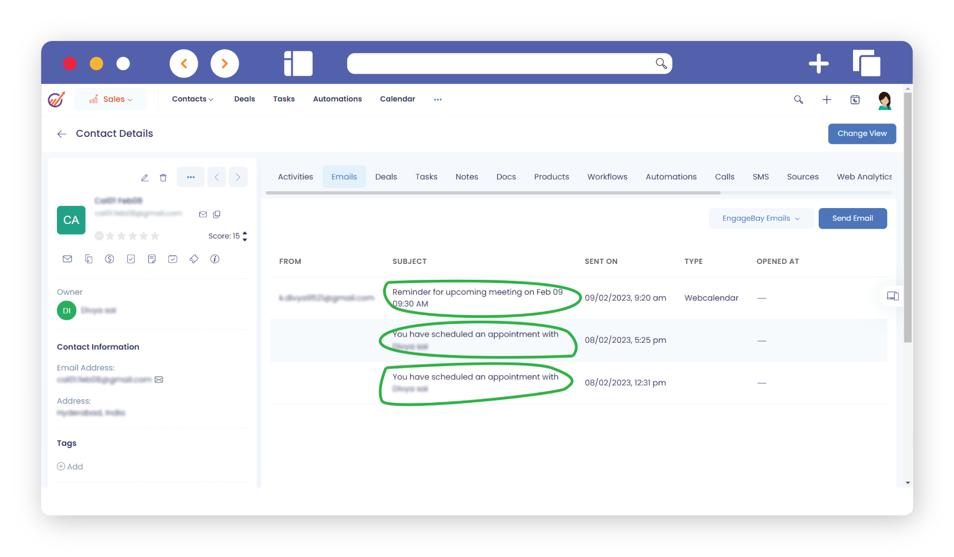 In case you are using Zoom for conducting webinars, you can automatically add attendees from the contacts in your EngageBay CRM. Not just this, CRM also allows you to send personalized emails to your contacts. So, integrating Zoom with EngageBay CRM helps in informing the attendees about the schedule, topics to be discussed and any other changes as required- more efficiently and in less time.
