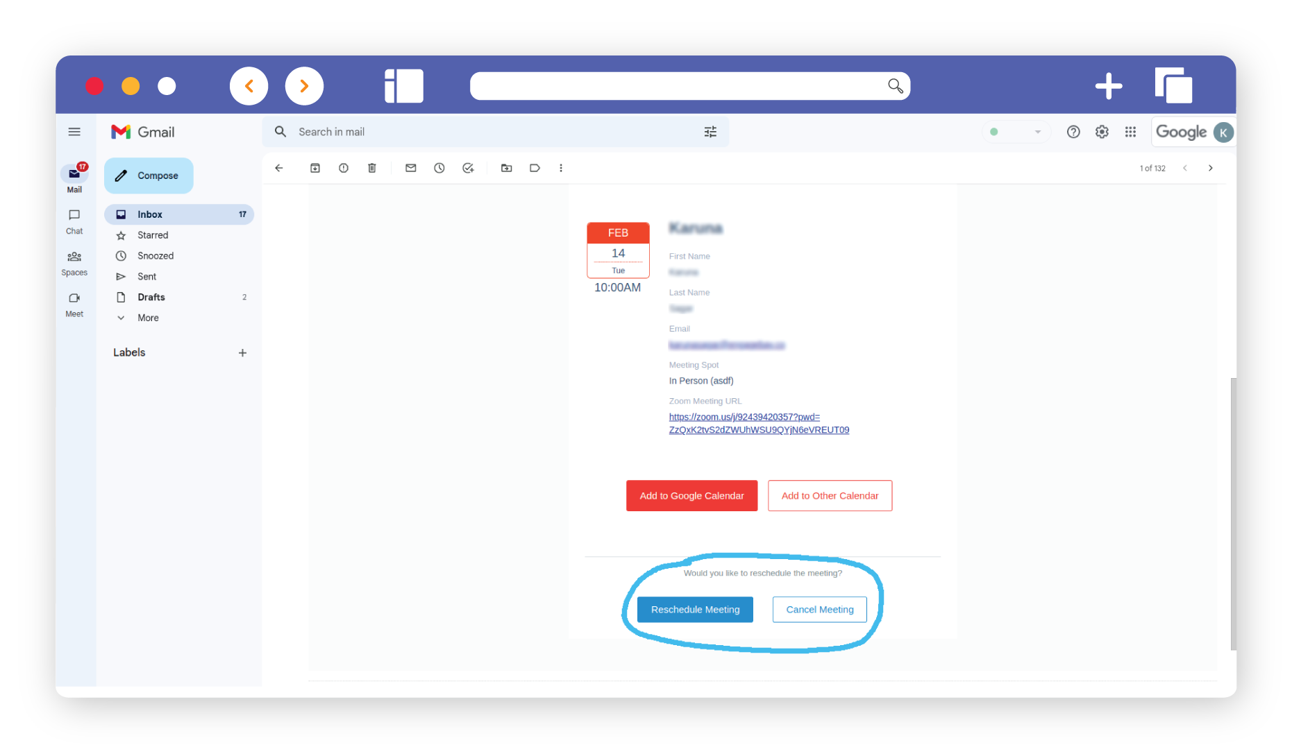 When your Zoom meeting is rescheduled, the plugin will send out an email to all contacts/invitees highlighting details of the meeting. Rescheduling emails will use a different email template.